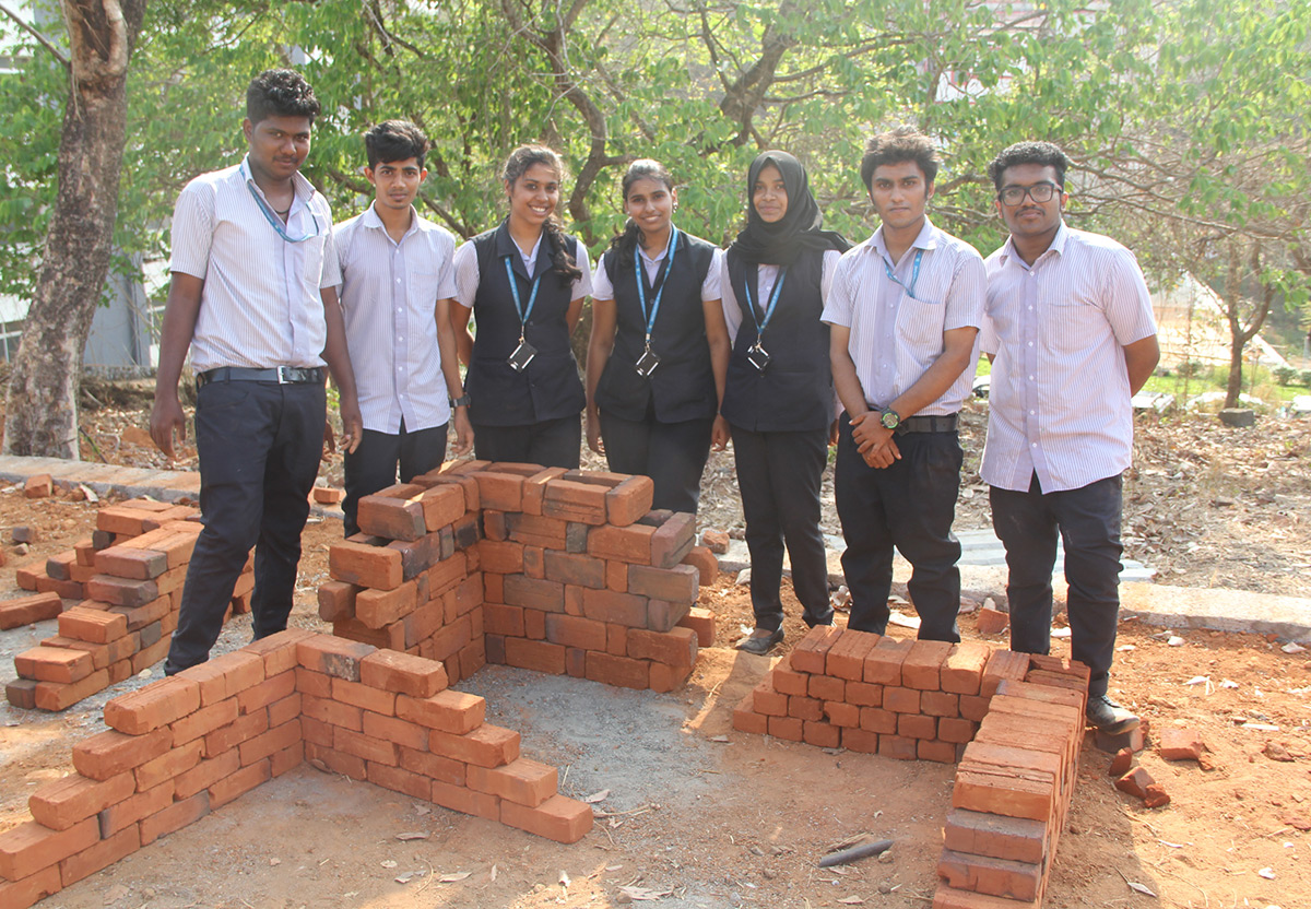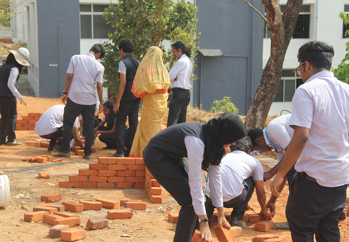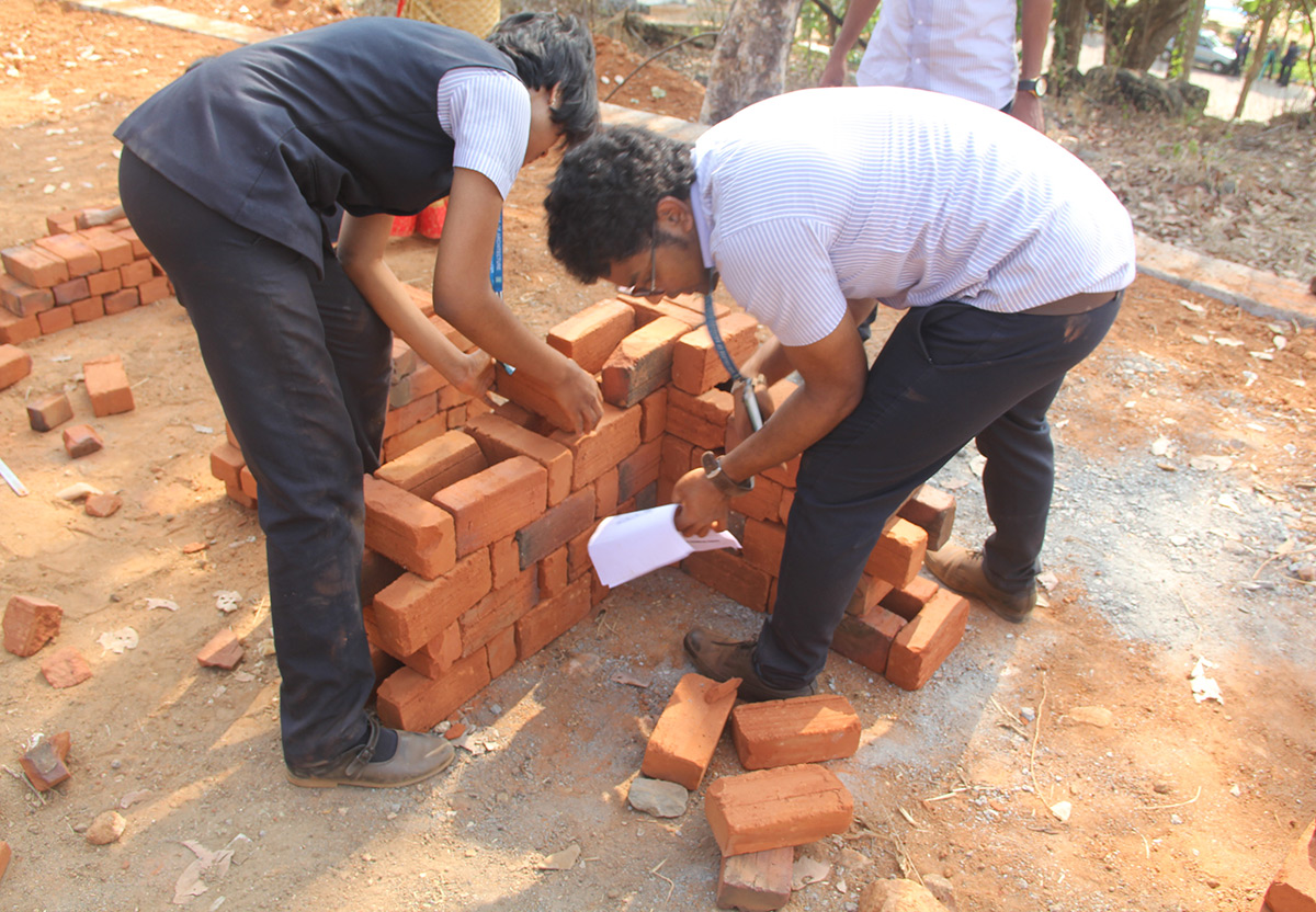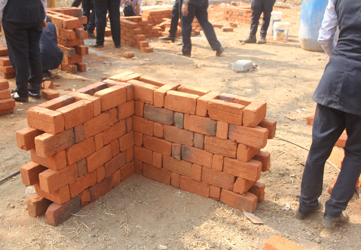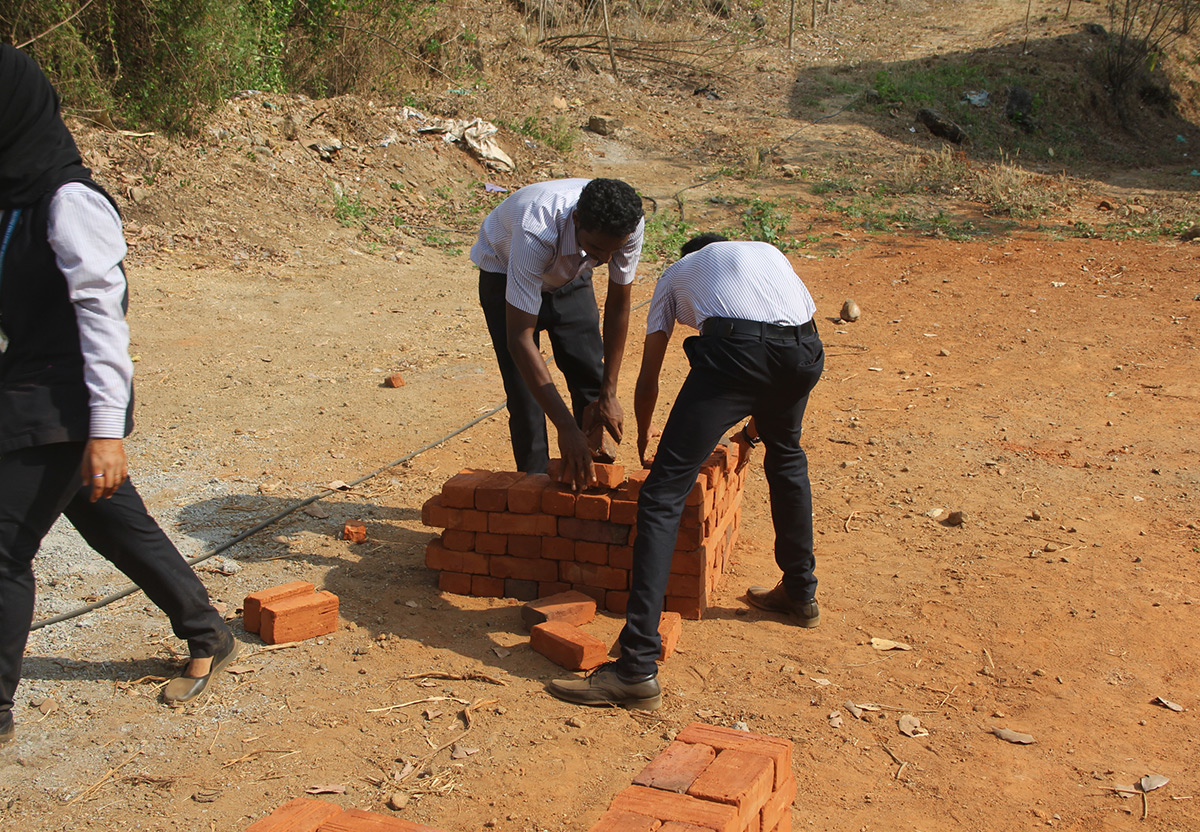 As part of the Construction Workshop, a session on brick bonding was organized at the NCA Construction Yard.