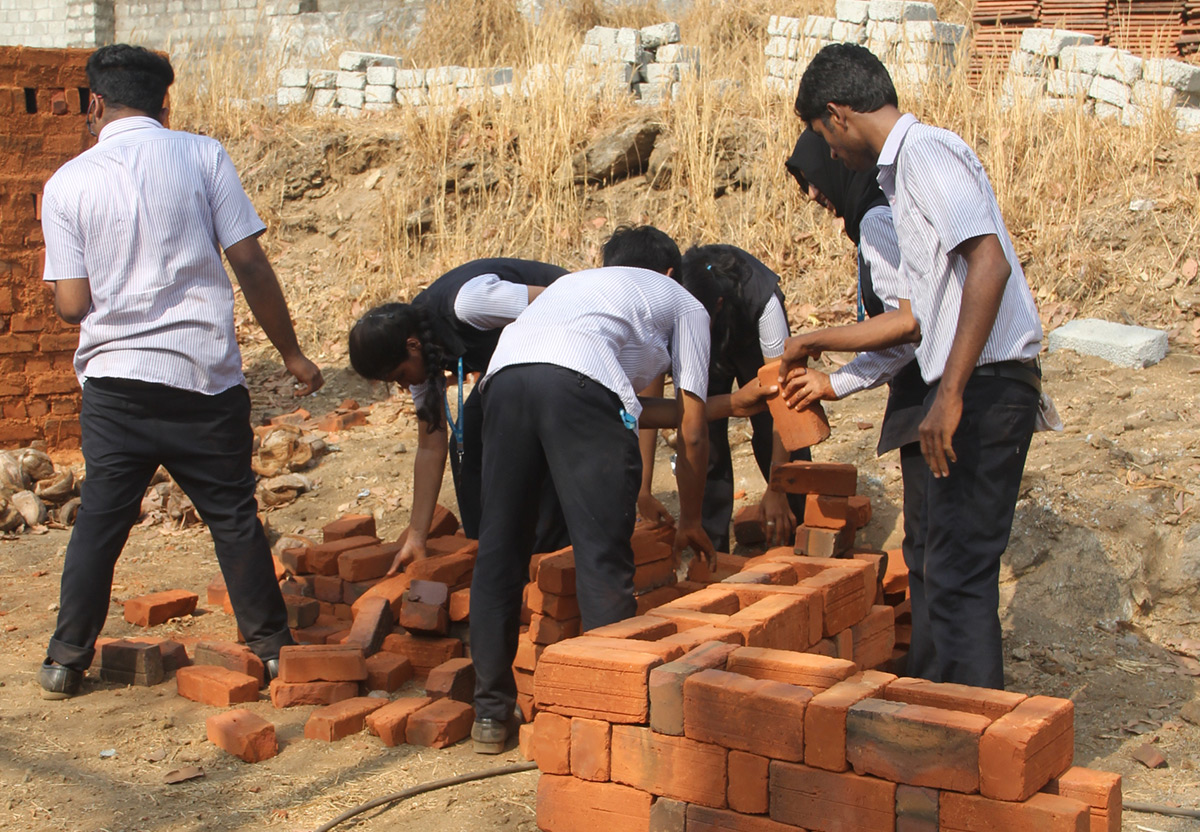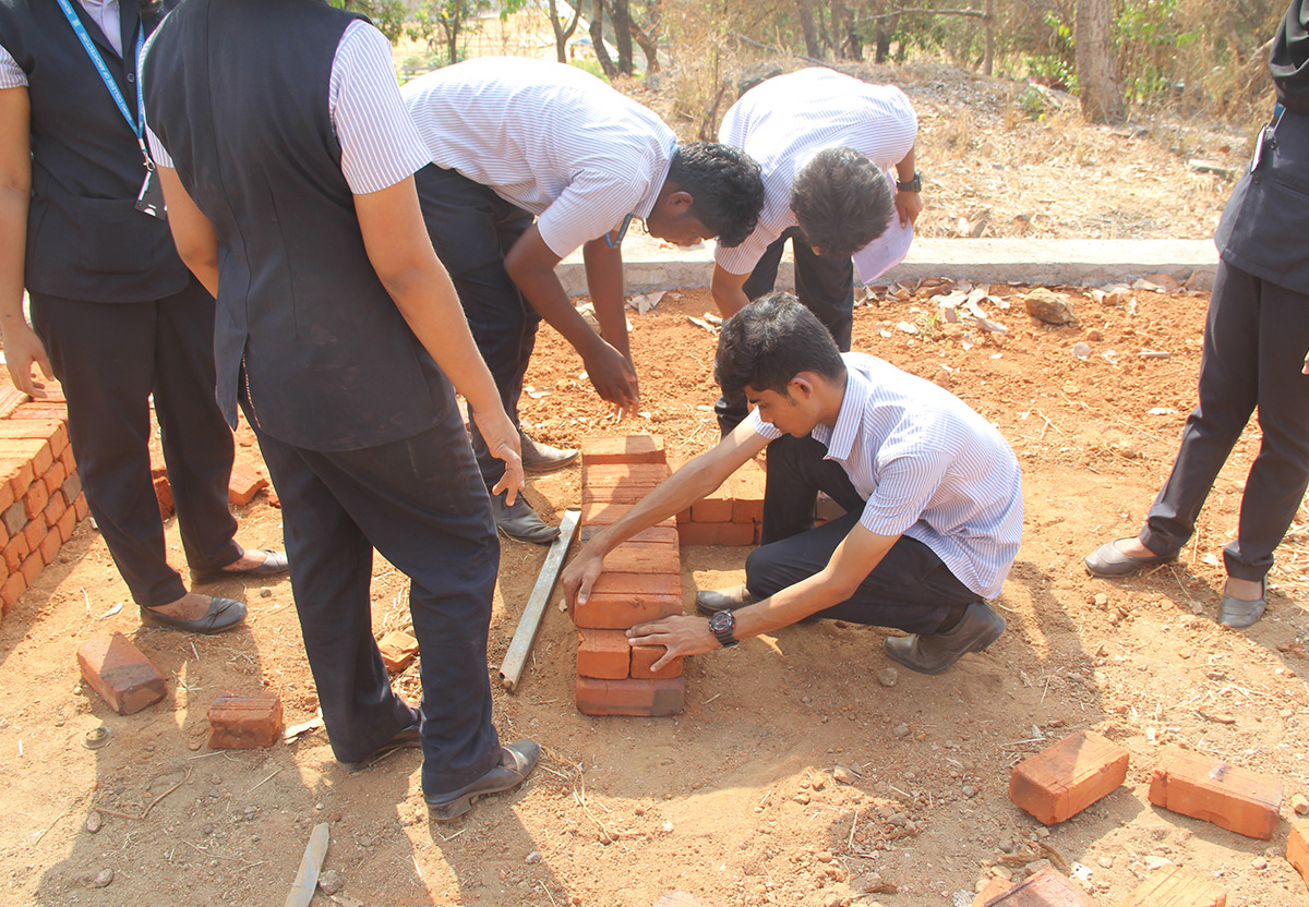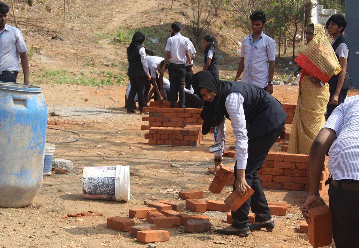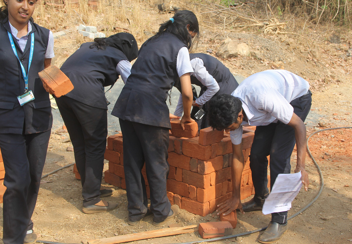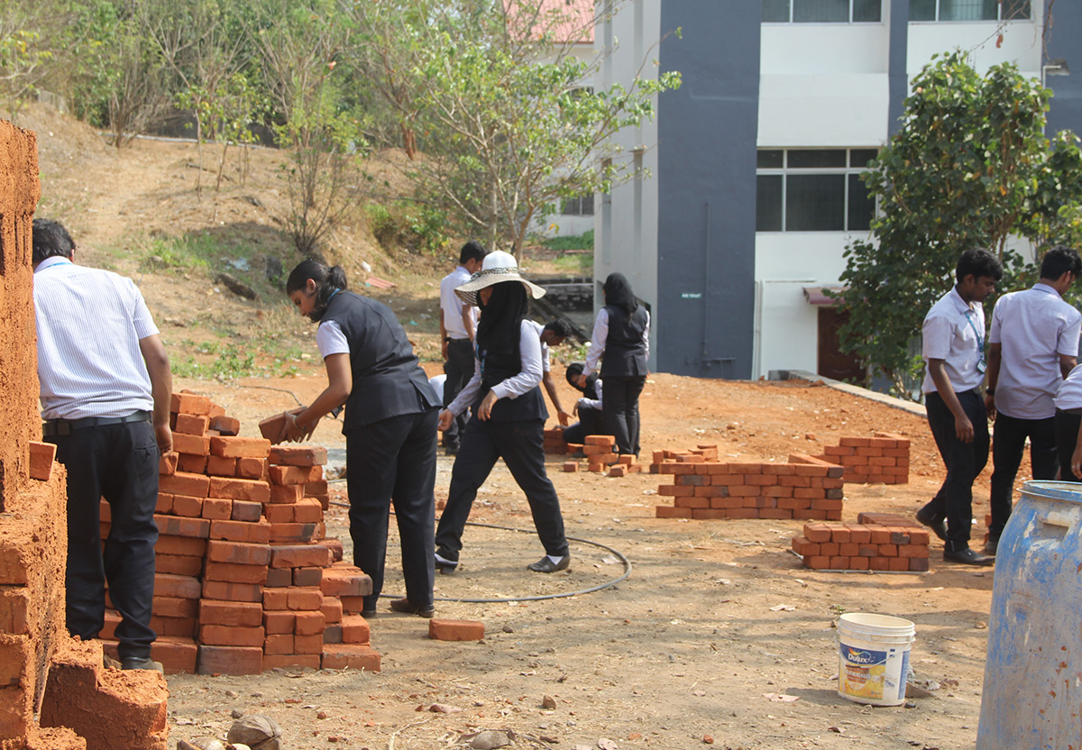 As part of the Construction Workshop, a session on brick bonding was organized at the NCA Construction Yard.