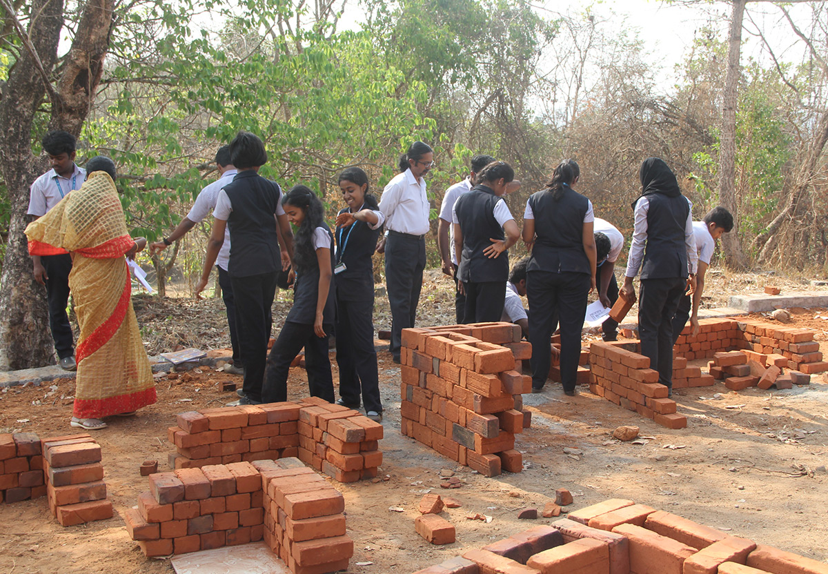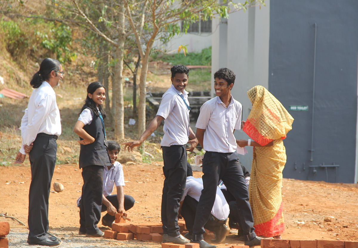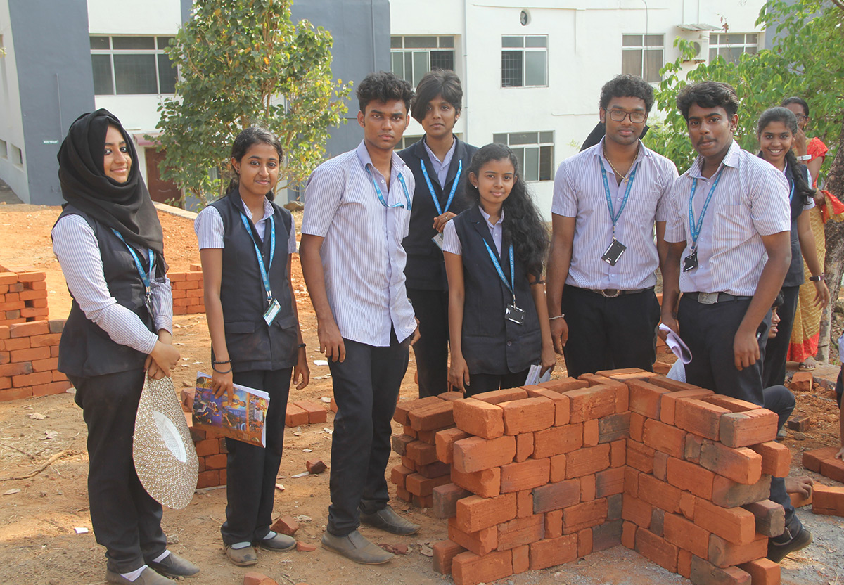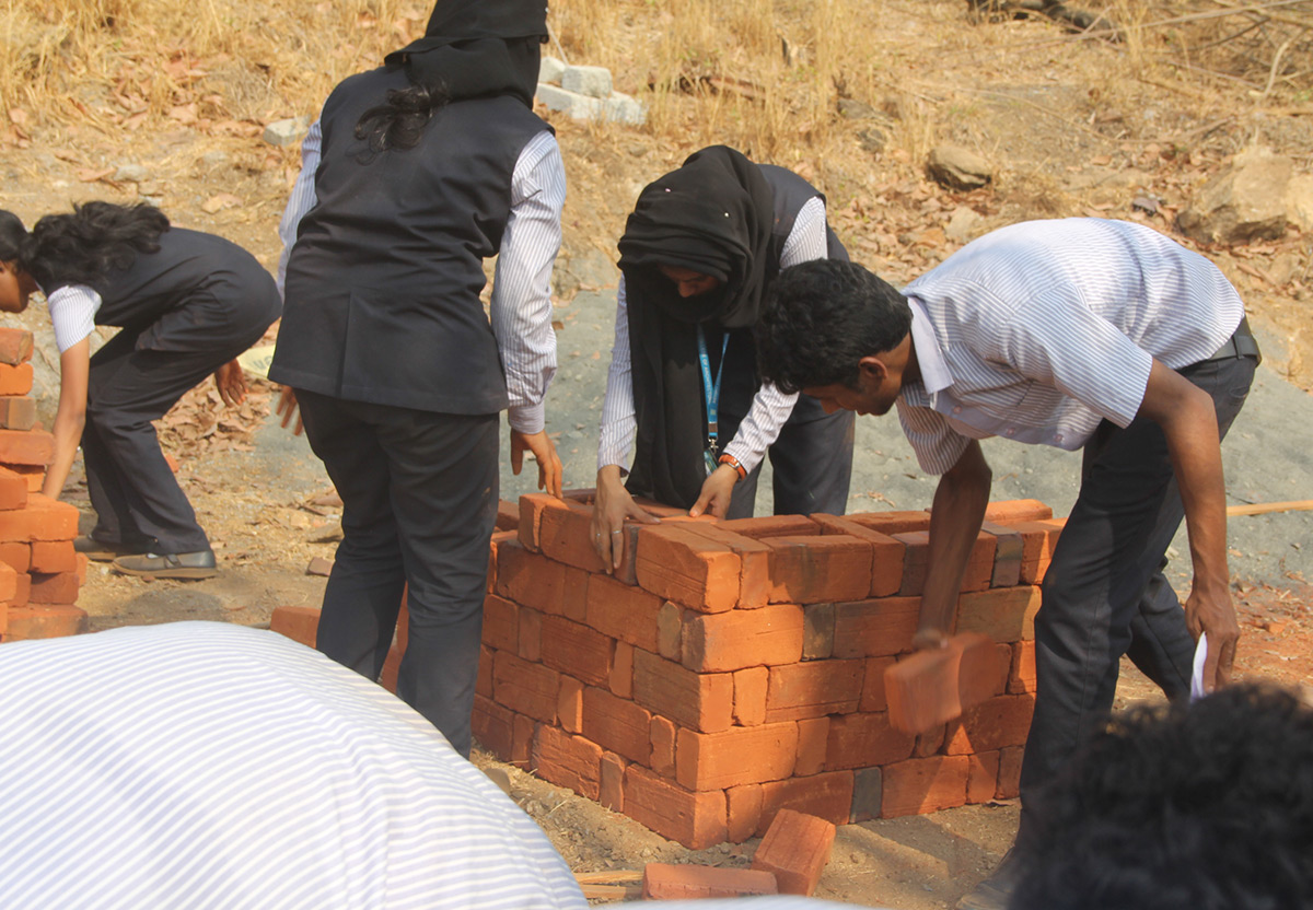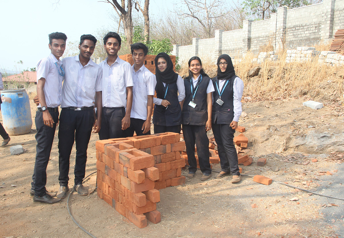 As part of the Construction Workshop, a session on brick bonding was organized at the NCA Construction Yard.