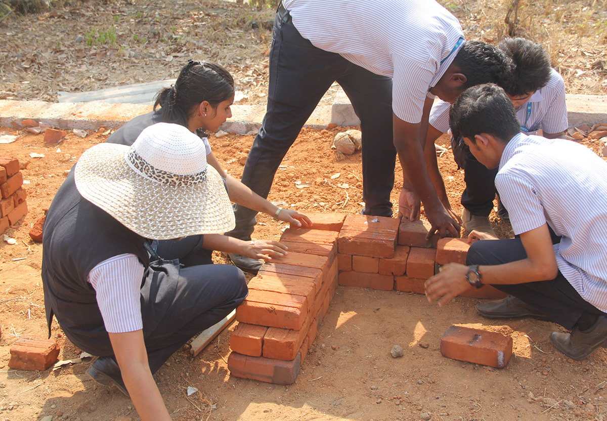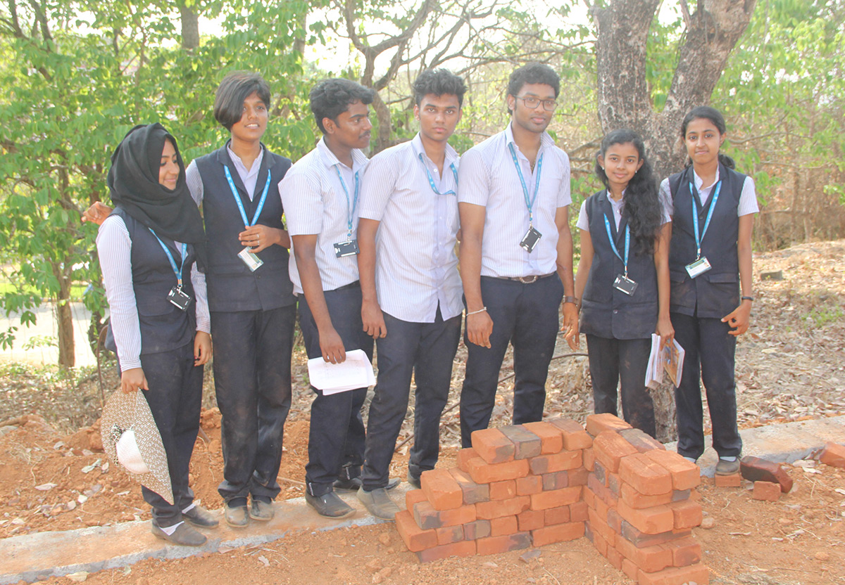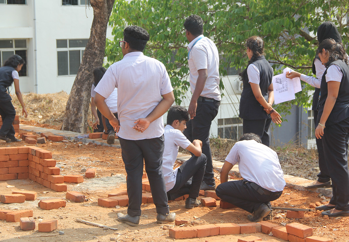 Students were divided into four groups. Each group worked on various bonds like Stretcher, Header, English, Flemish and the Rat-trap bond.